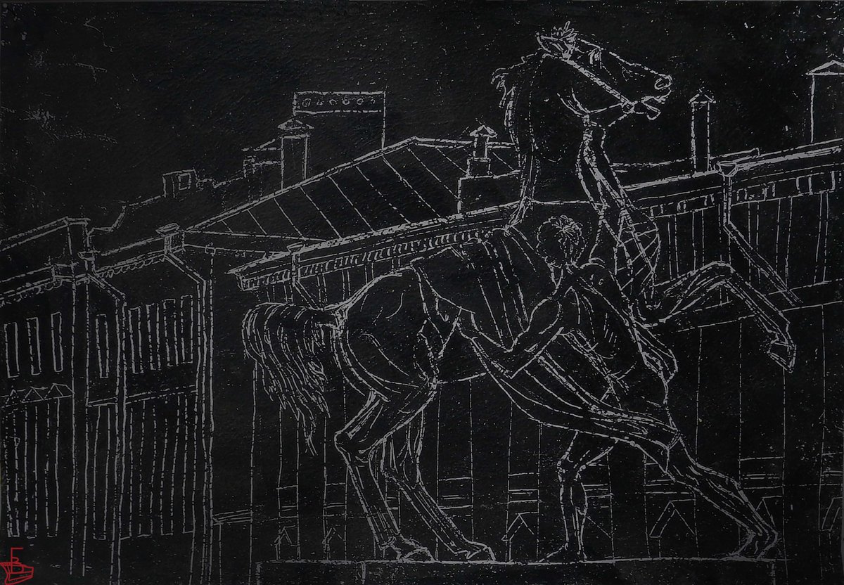 Эта серия об украшениях мостов. Выбрана эта тема потому, что в Питере много мостов, но каждый из них уникален и прекрасен. Удивительно то, что для создания каждого из них было продолжено столько сил. Приятно это замечать и хочется ценить. Серия выполнена в технике воскографии, которая выражает то, как образ прорисовывается, будто процарапывается, в нашем сознании.