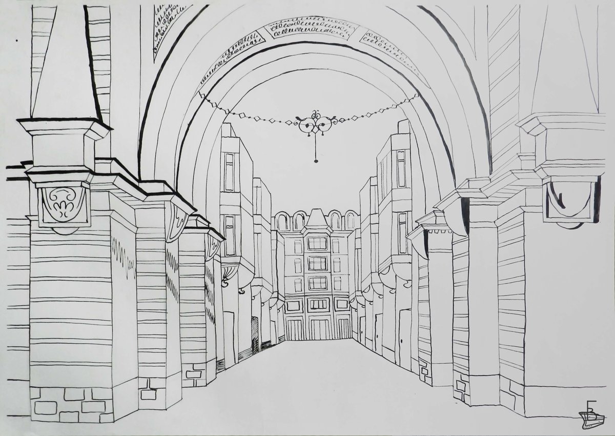 Эта работа о том, как можно не замечать маленькую, но невероятно красивую деталь, ходя мимо нее по два раза каждый день. Именно это случилось со мной. Эта арка находится по дороге к академии, но каждый раз, проходя ее, я думала об учебе и не замечала ничего вокруг. И лишь по прошествии более полугода, остановившись на этом перекрестке и разговаривая, я обратила на него внимание. Это прямой пример того, как внутреннее состояние влияет на восприятие окружающего мира.
